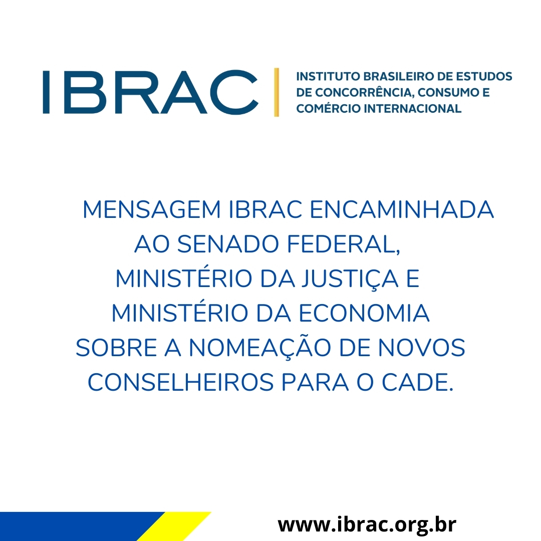 O INSTITUTO BRASILEIRO DE ESTUDOS DE CONCORRÊNCIA, CONSUMO E COMÉRCIO INTERNACIONAL (“IBRAC”), entidade sem fins lucrativos fundada em dezembro de 1992 para promover pesquisas, estudos e debates sobre temas relacionados à defesa da concorrência, comércio internacional, consumo e regulação, atento às suas finalidades institucionais, vem manifestar sua preocupação com a sistemática de nomeação de novos Conselheiros, Presidência, Procuradoria Federal especializada e Superintendência-Geral do CADE.