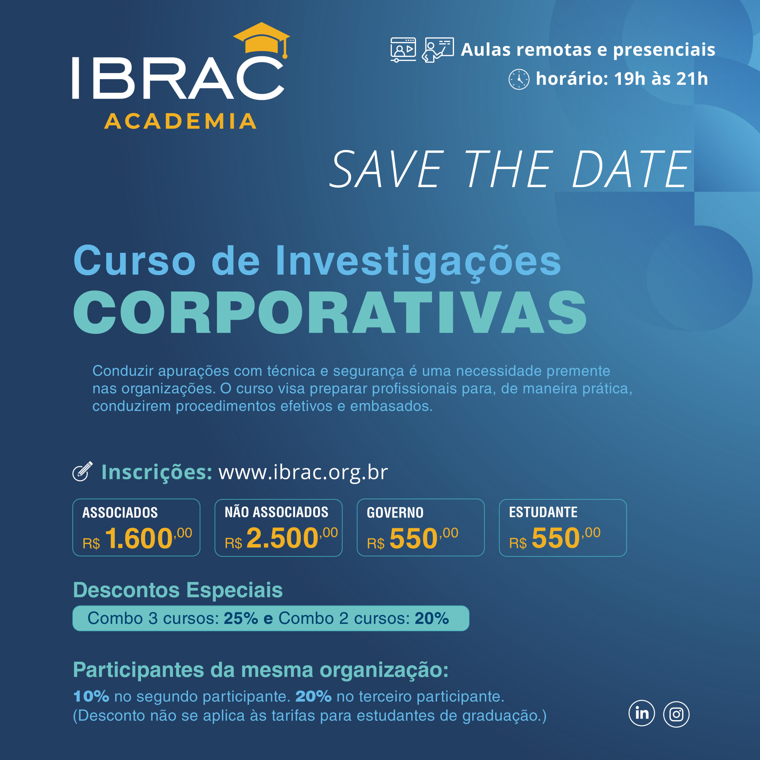 Inscrições www.ibrac.org.br