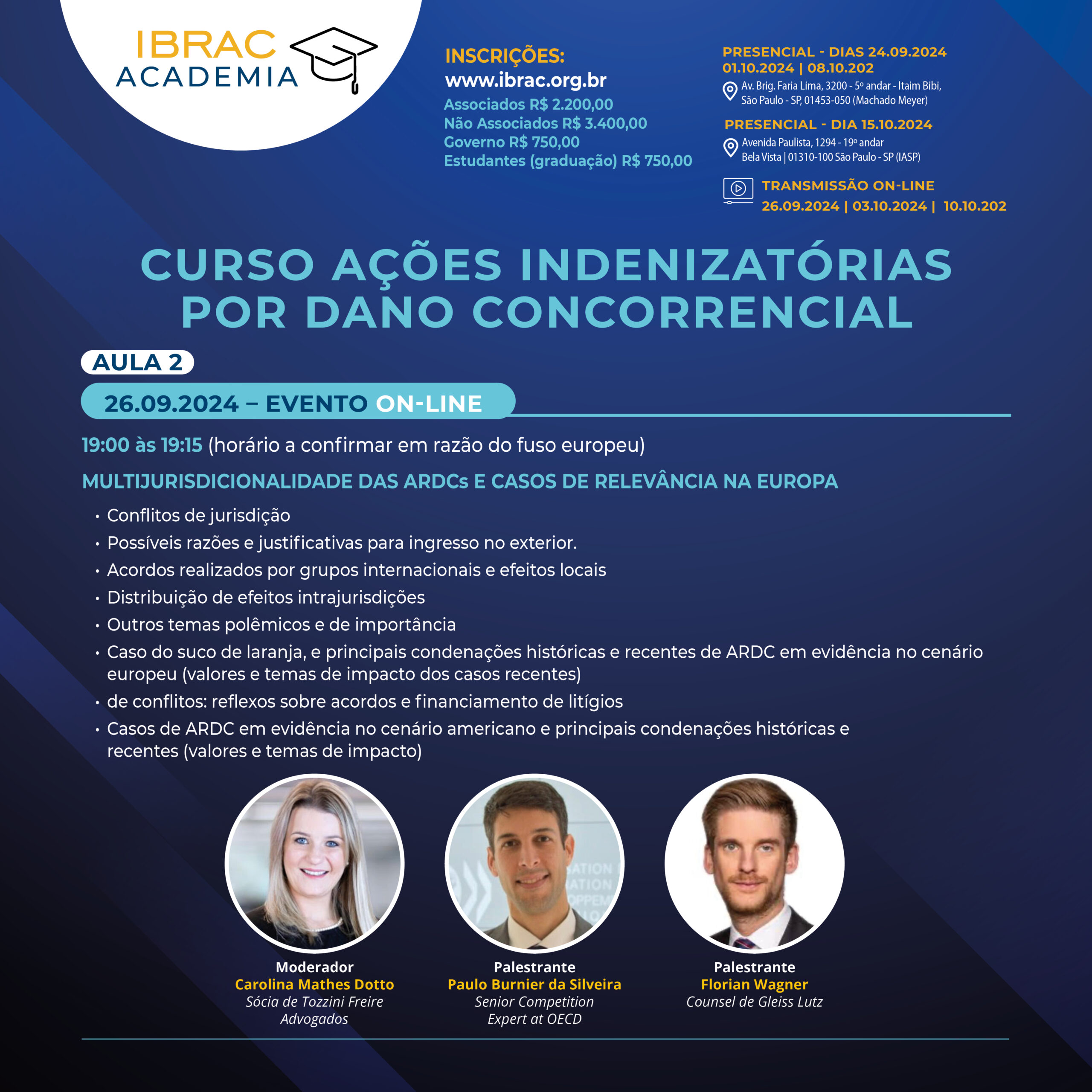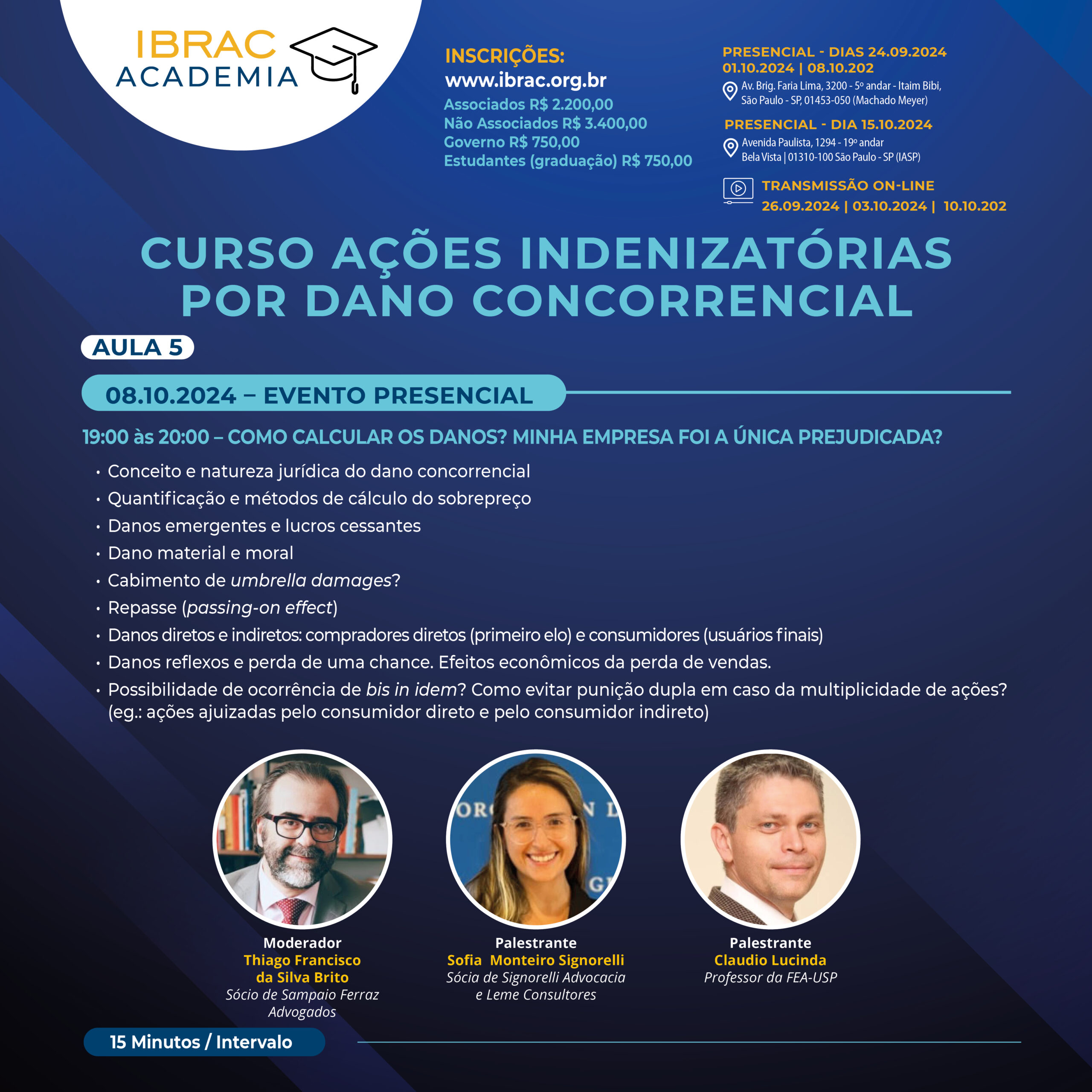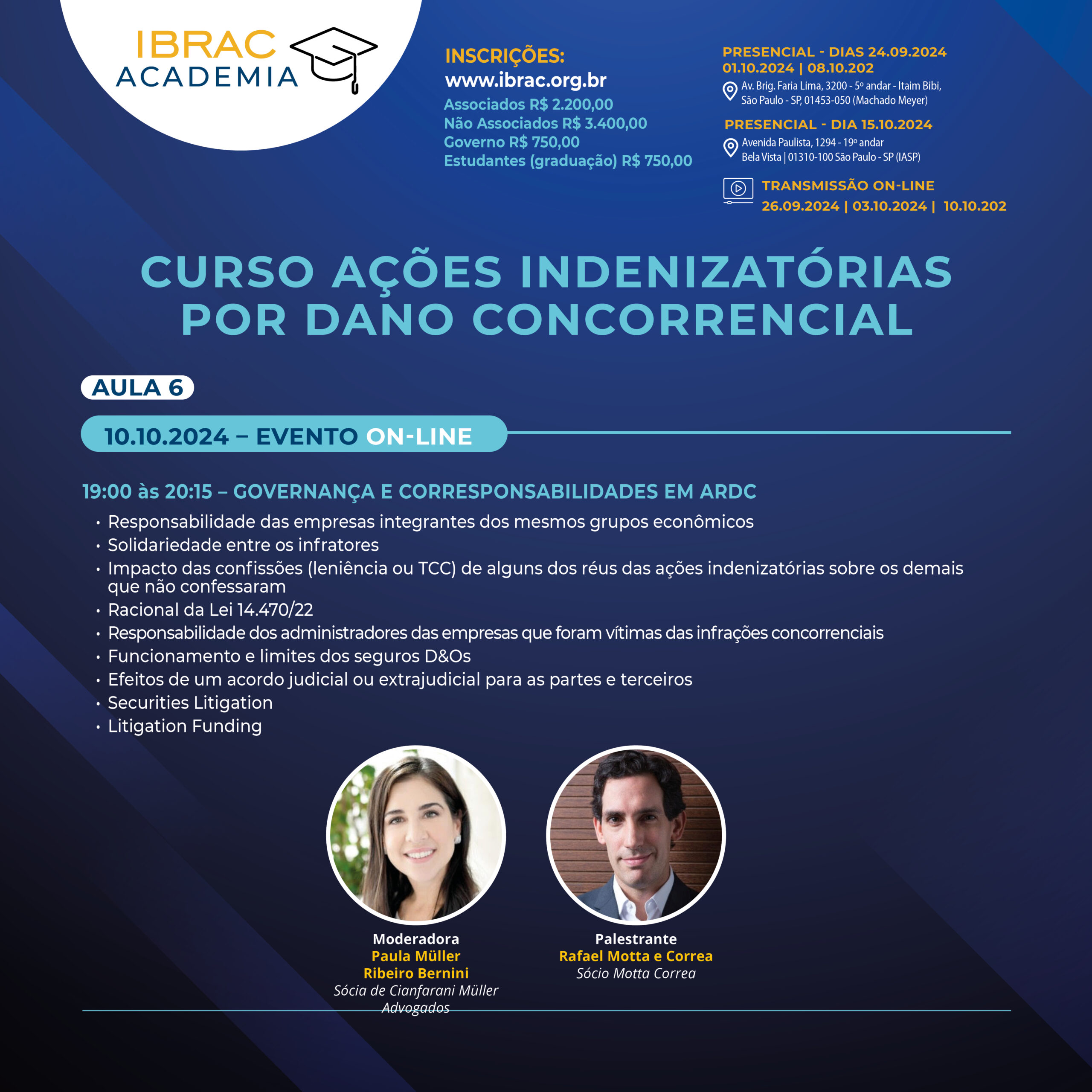 19:00 às 20:00 – MINHA EMPRESA FOI VÍTIMA DE DANOS CONCORRENCIAIS OU A MINHA EMPRESA ESTÁ SENDO ACUSADA: O QUE FAZER?