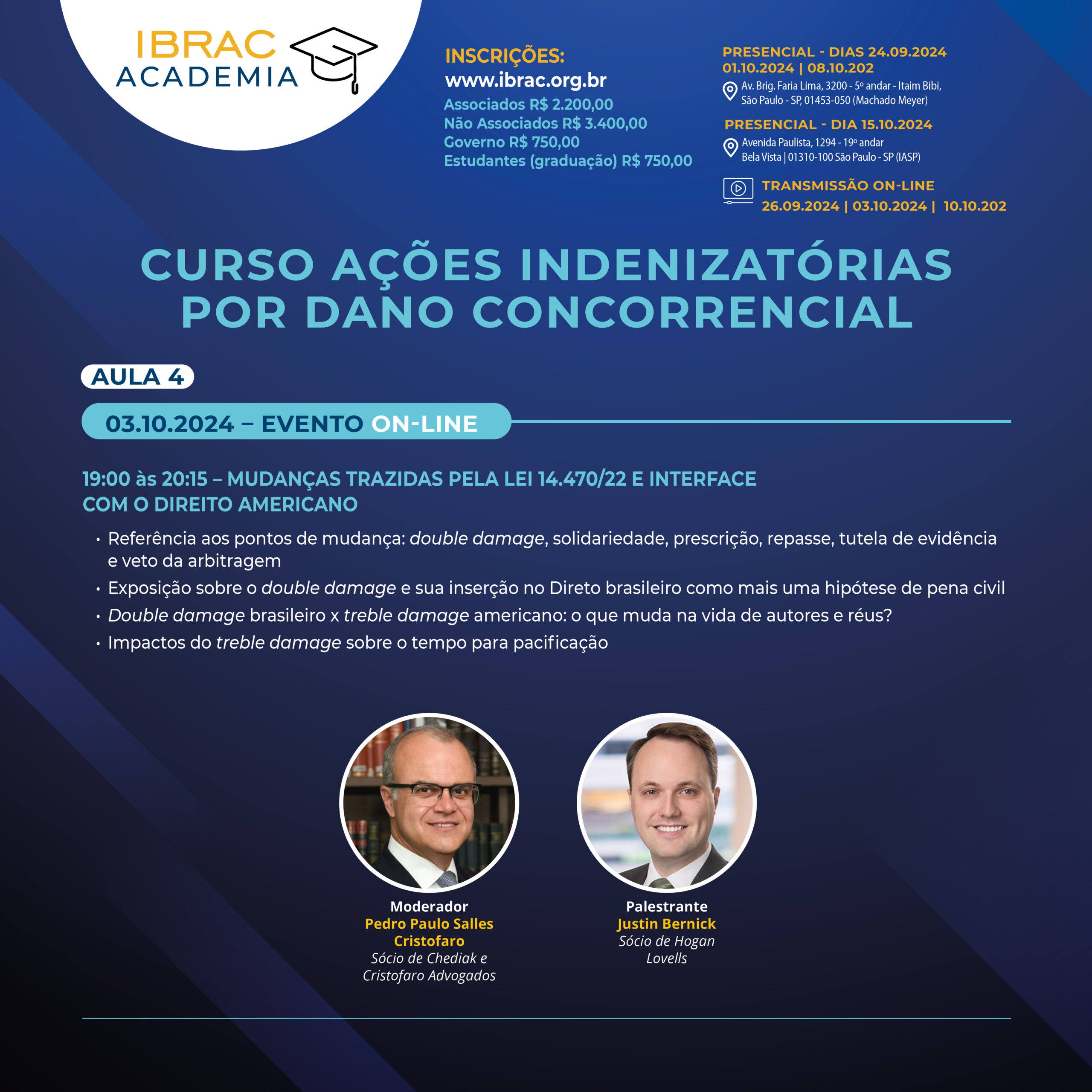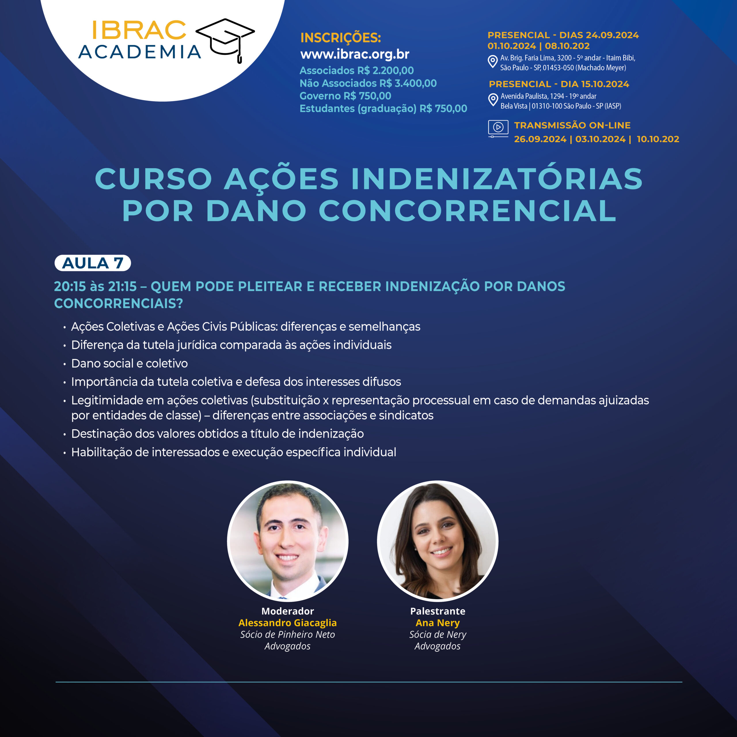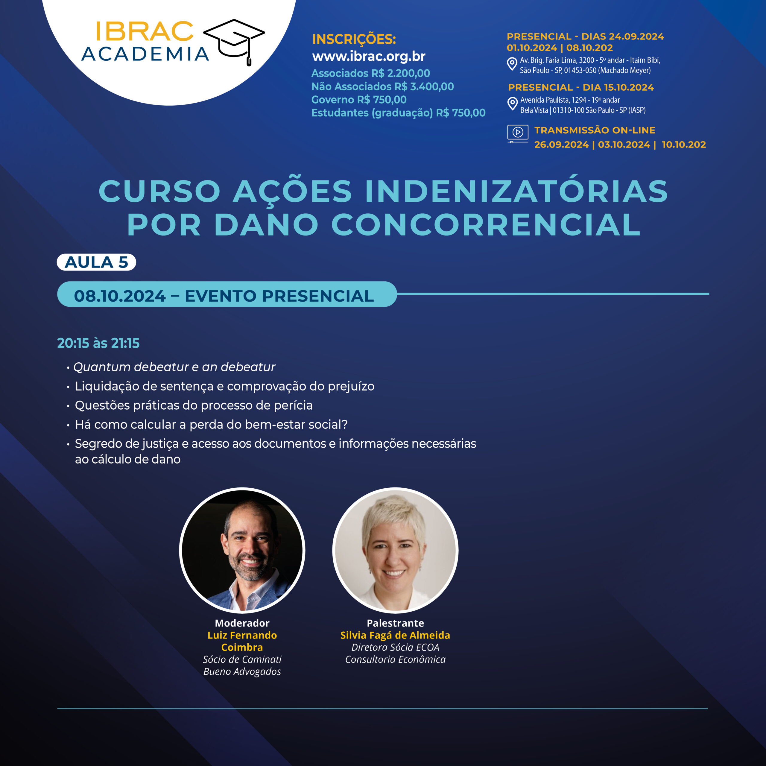 19:00 às 20:00 – MINHA EMPRESA FOI VÍTIMA DE DANOS CONCORRENCIAIS OU A MINHA EMPRESA ESTÁ SENDO ACUSADA: O QUE FAZER?