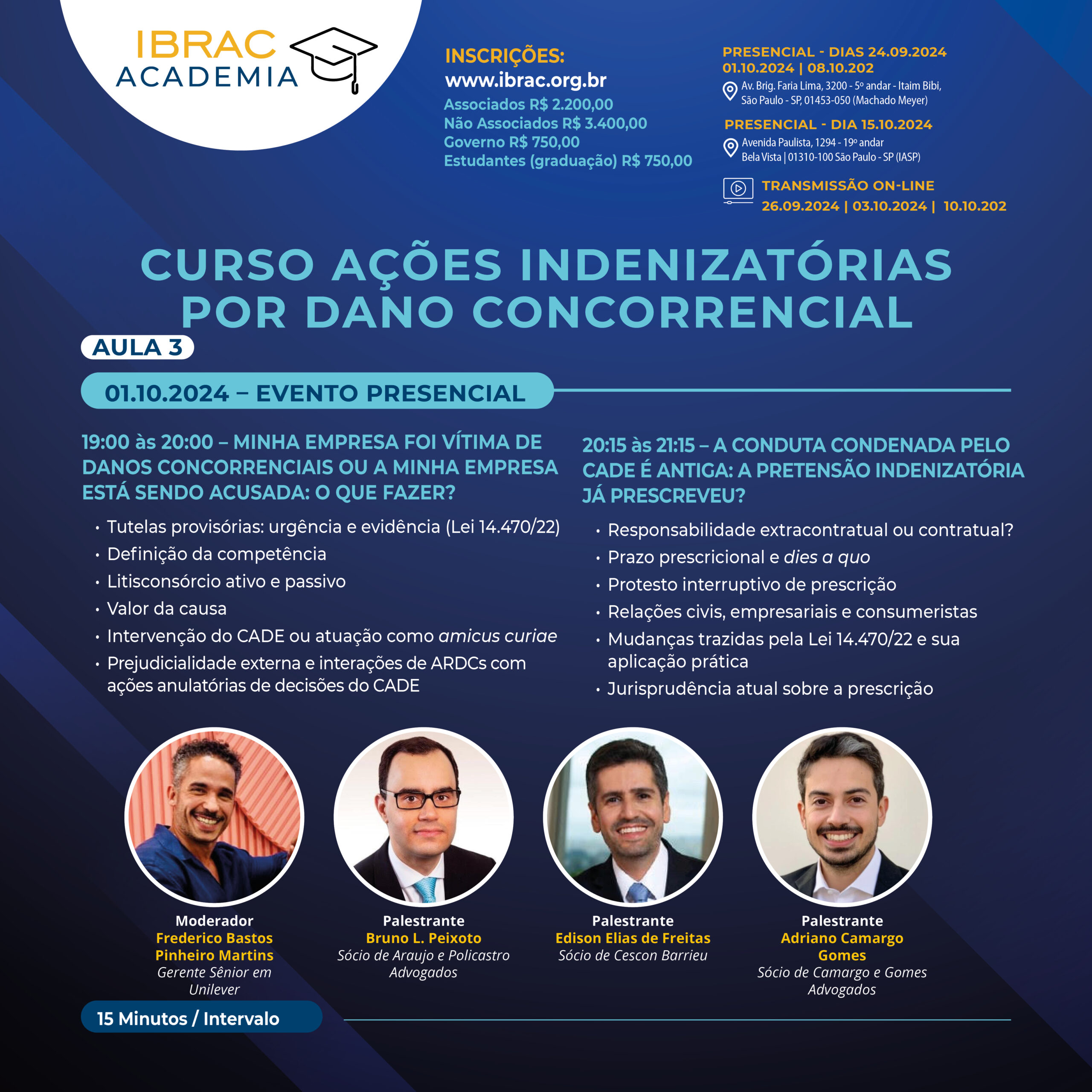 20:15 às 21:15 – A CONDUTA CONDENADA PELO CADE É ANTIGA: A PRETENSÃO INDENIZATÓRIA JÁ PRESCREVEU?