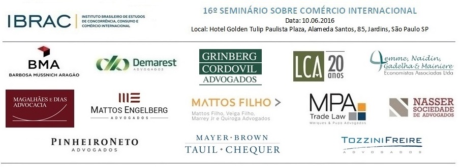 Sobre o Programa | O Programa do 16º Seminário IBRAC sobre Comércio Internacional foi definido com base em propostas apresentadas pelos associados do IBRAC selecionadas pela Comissão formada por: Francisco Niclós Negrão, Renê Medrado, Lucas Spadano e Carolina Monteiro de Carvalho. Os painéis do presente programa foram propostos por: Painel I – Vera Kanas Grytz (TozziniFreire Advogados); Painel II – Rabih Nasser, Nathalie Sato (FGV e Nasser Sociedade de Advogados) e Cynthia Kramer (LOB-SVMFA Advogados); Painel III – Carla Junqueira (Mattos Engelberg Advogados); e Painel IV – Gustavo Madi Rezende (LCA Consultores)