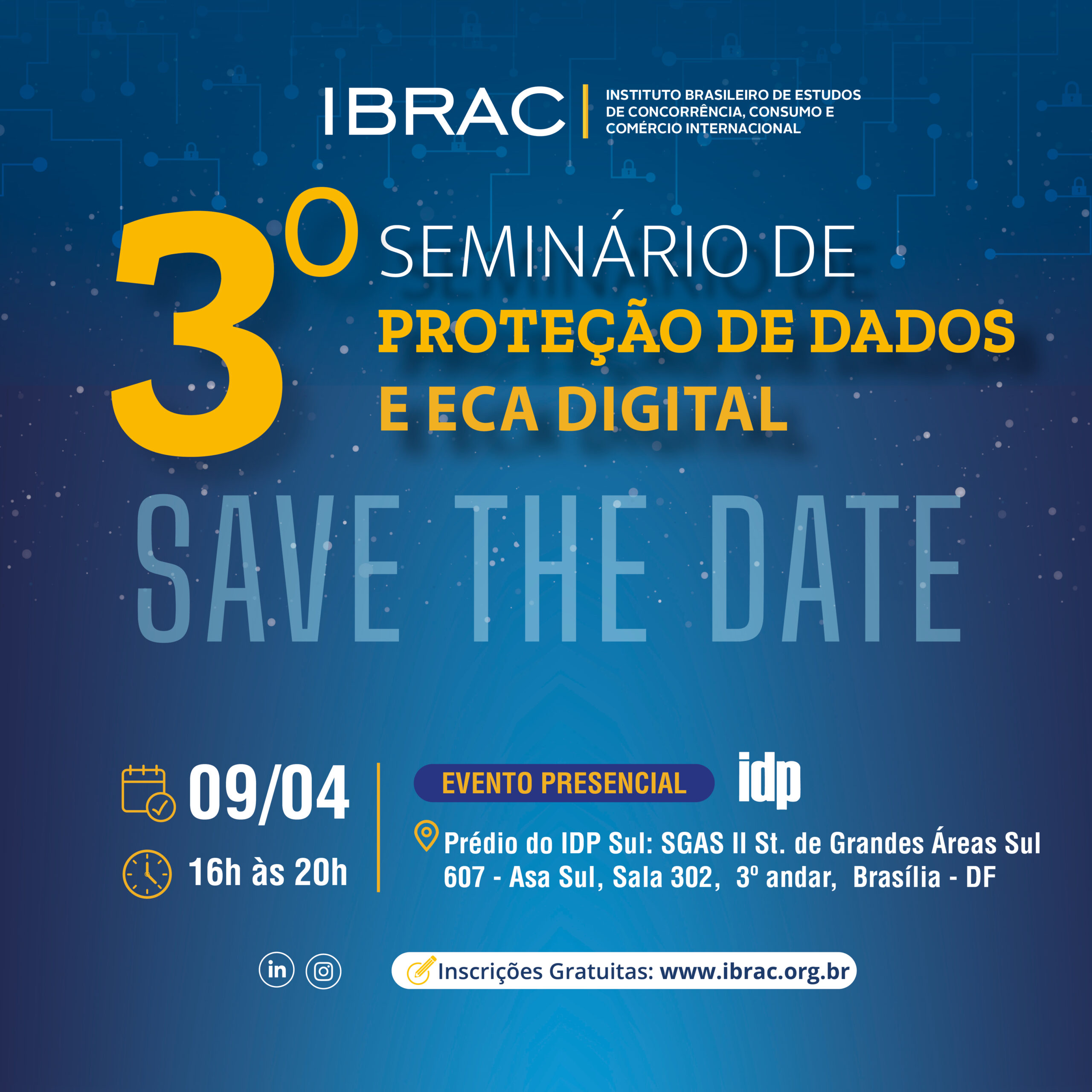 09/04, Presencial, Prédio do IDP Sul, SGAS II St. de Grandes Áreas Sul, 607 – Asa Sul, Sala 302, 3º andar, Brasília – DF