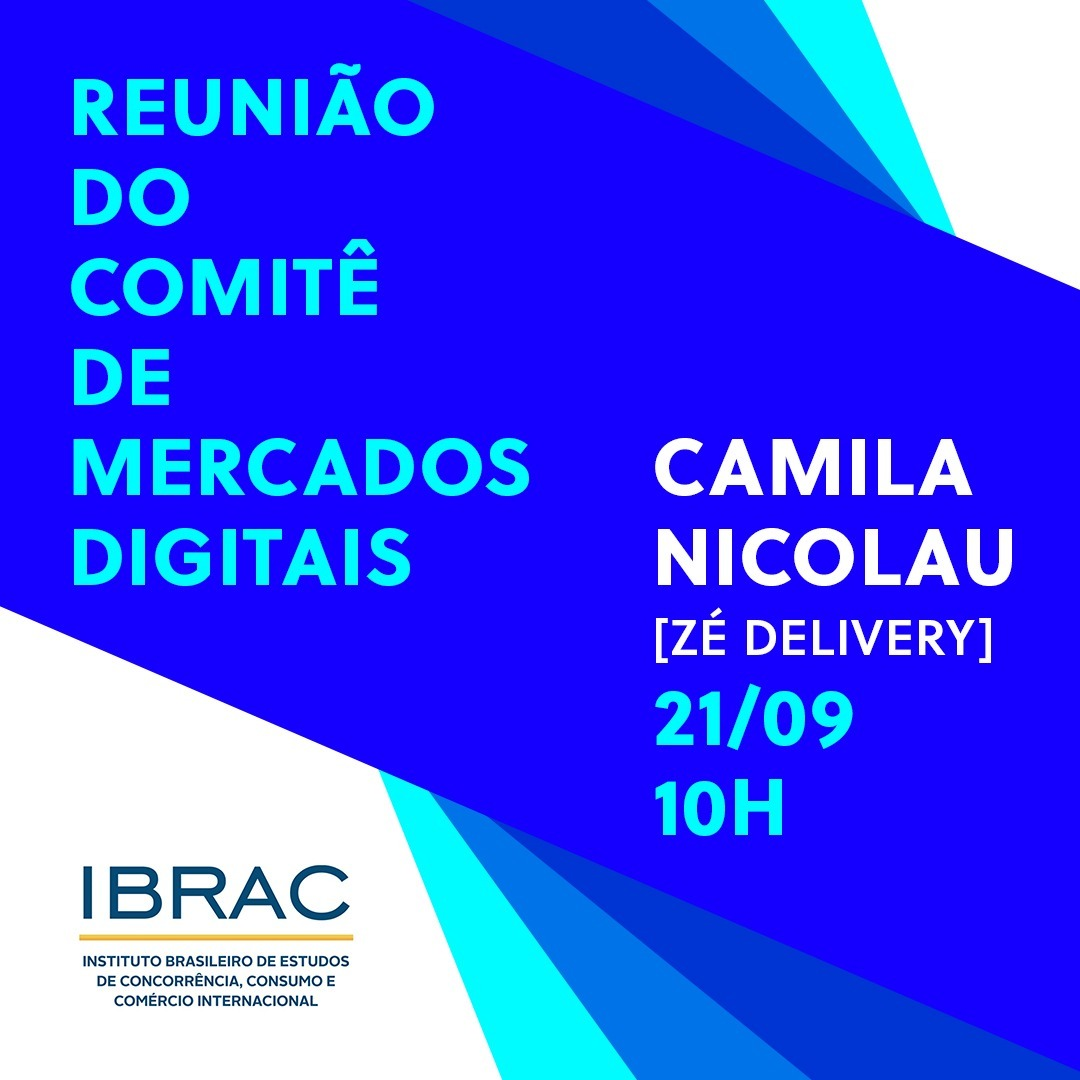 No próximo dia 21/09, às 10h, teremos a reunião do Comitê de Mercados Digitais com participação de Camila Nicolau, Head do Jurídico e de Relações Corporativas do Zé Delivery.