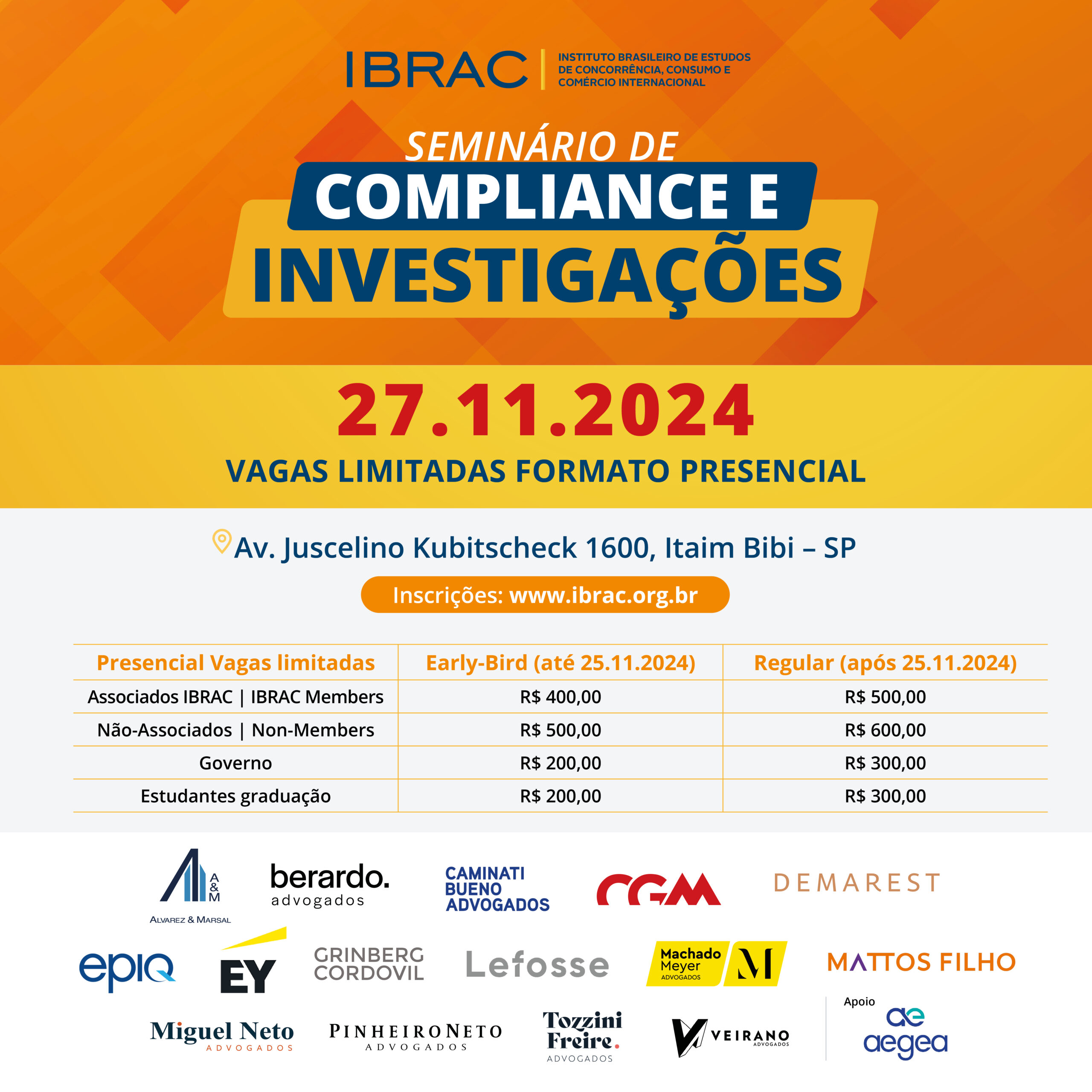| Associados IBRAC |IBRAC Members | R$ 400,00 | R$ 500,00 |