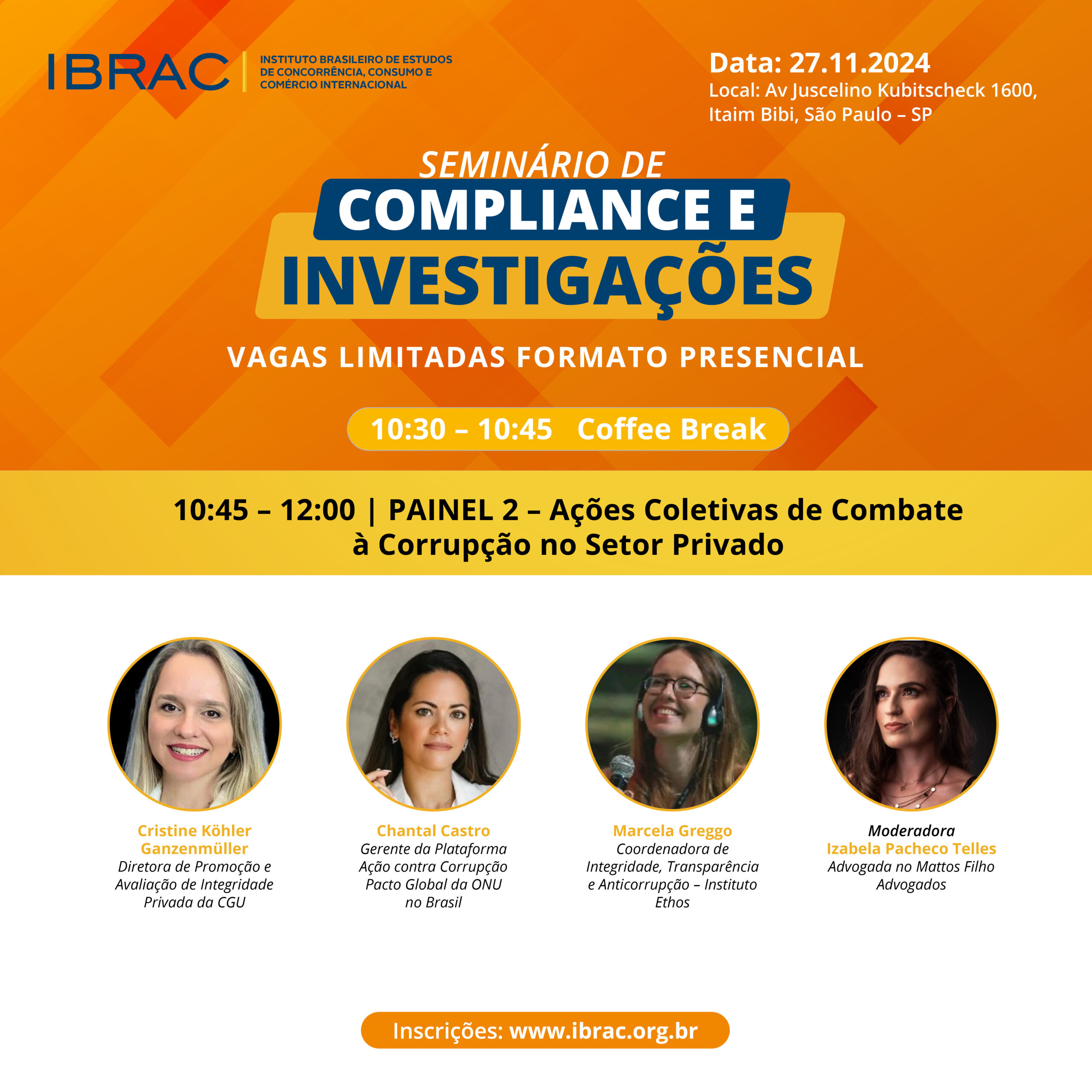 10:45 – 12:00 Painel 2 – Ações Coletivas de Combate à Corrupção no Setor Privado