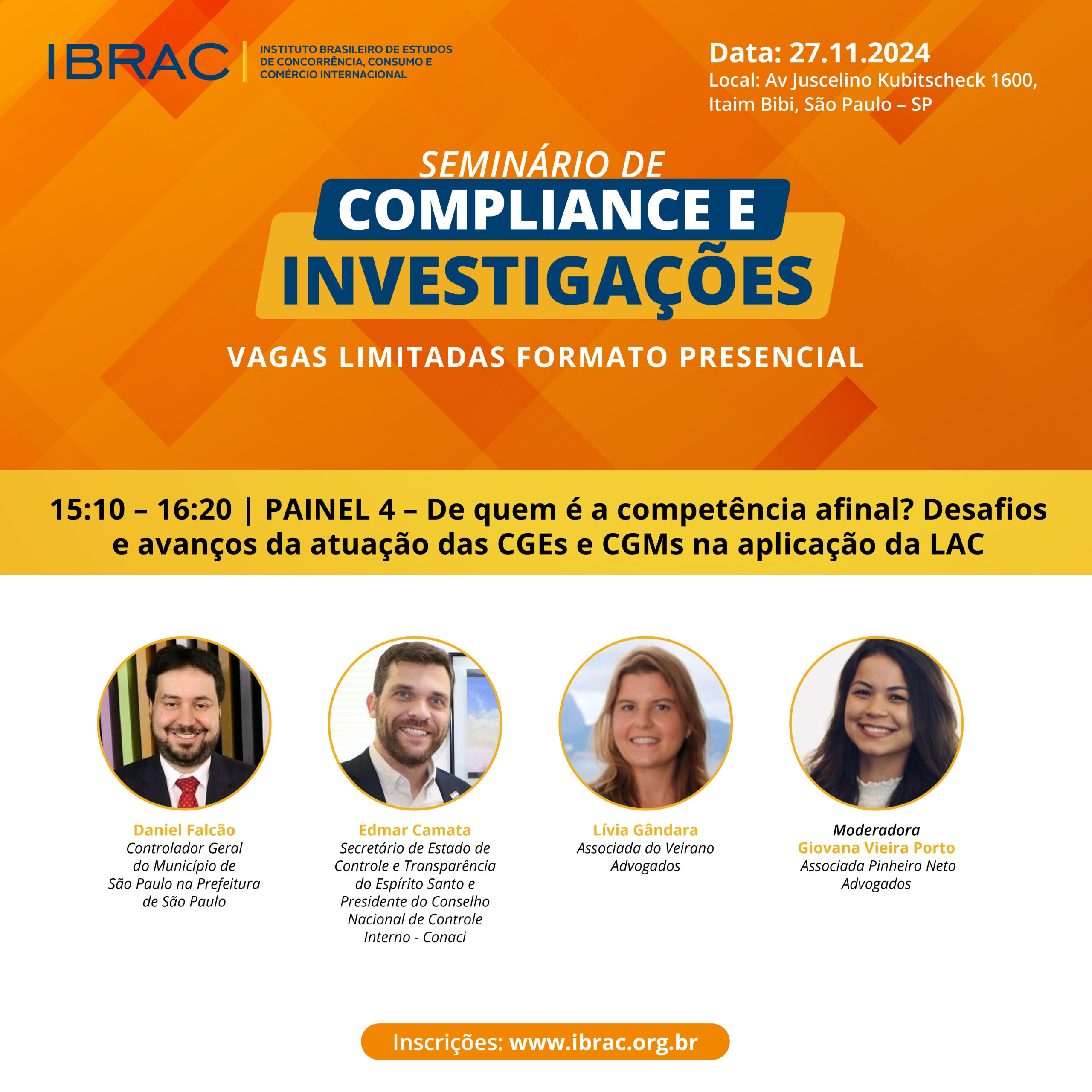 15:10 – 16:20 Painel 4 – De quem é a competência afinal? Desafios e avanços da atuação das CGEs e CGMs na aplicação da LAC