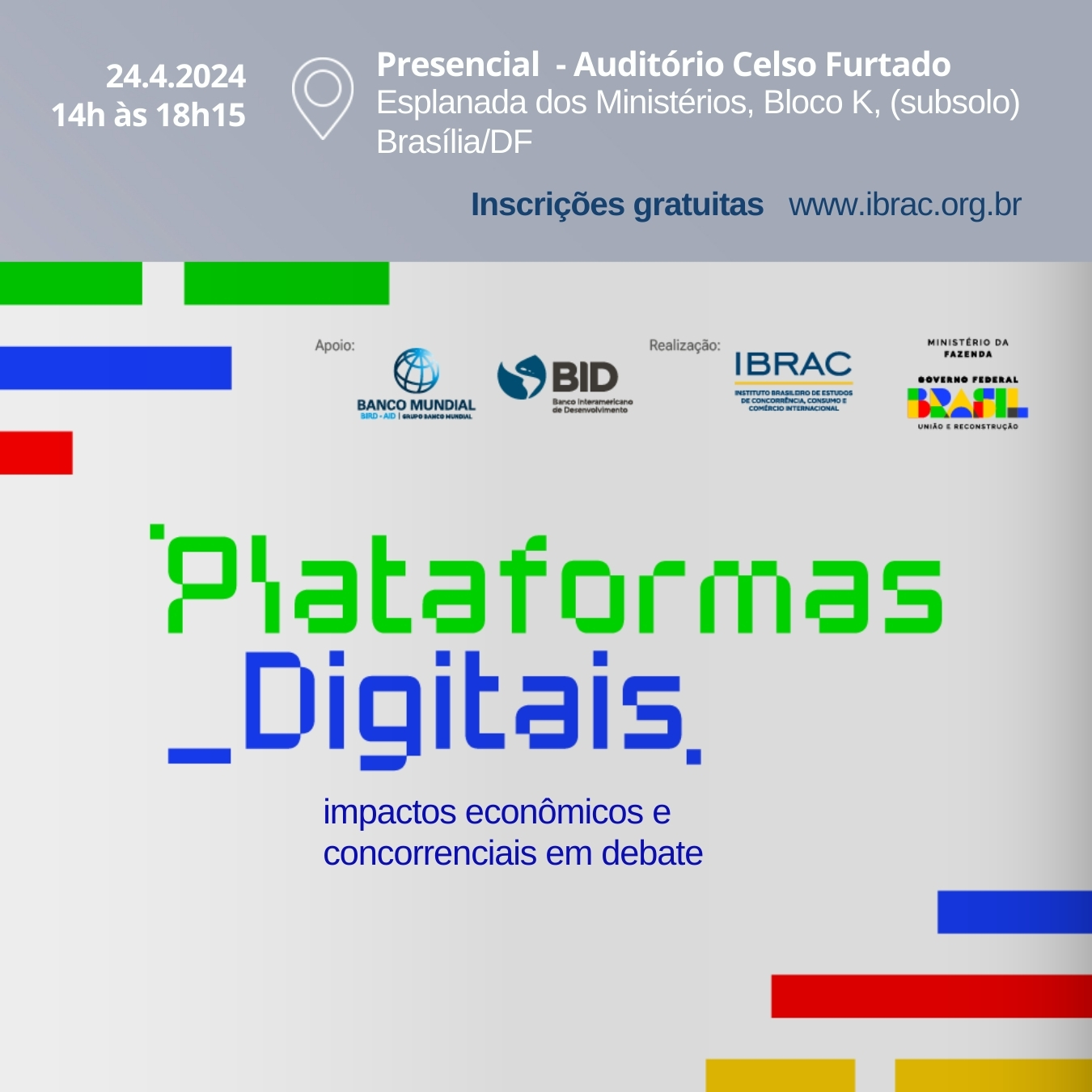 local: Presencial – Auditório Celso Furtado, Esplanada dos Ministérios, Bloco K, (subsolo), Brasília/DF