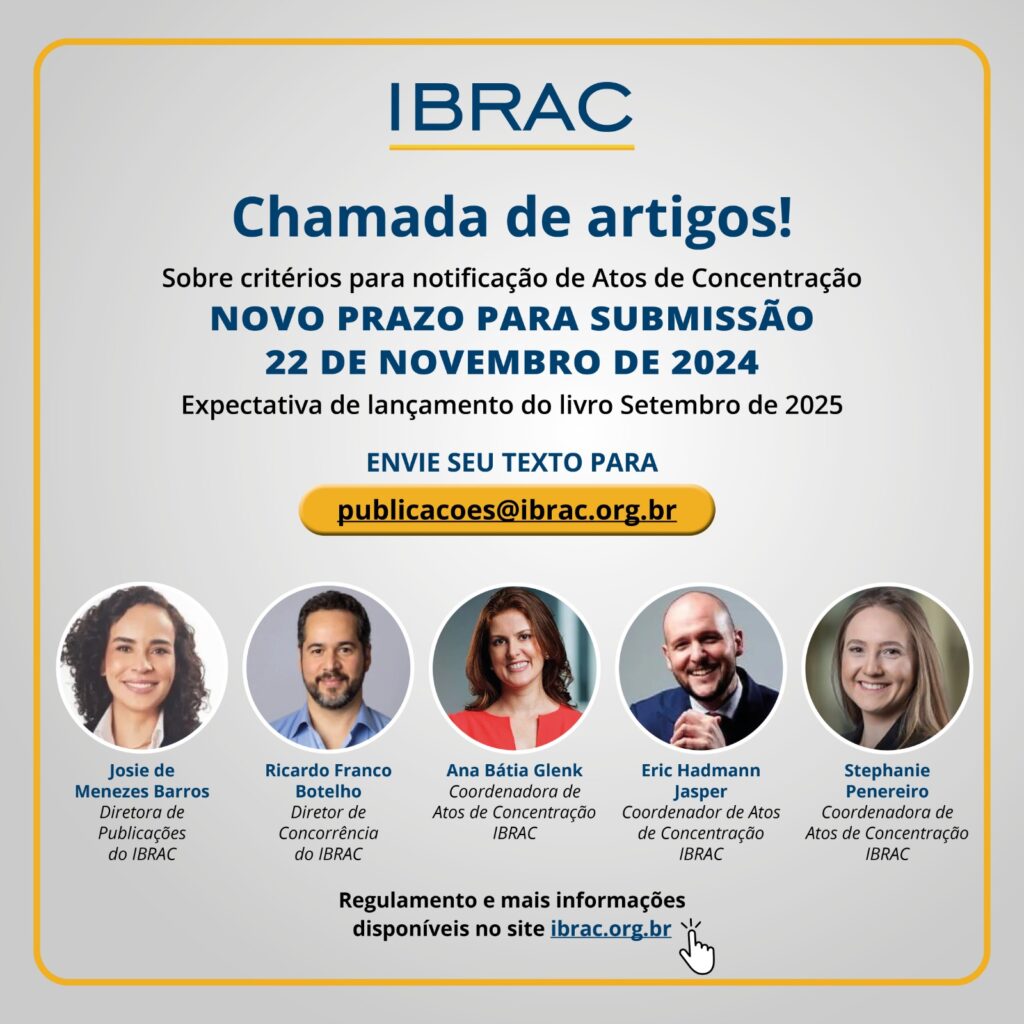 Baixe aqui o Edital Completo O Instituto Brasileiro de Estudos da Concorrência, Consumo e Comércio Internacional (IBRAC)através da sua Diretora de Publicações, Josie de Menezes Barros, e de seu Diretor de Concorrência,Ricardo Franco Botelho, juntamente com a Coordenação de Atos de Concentração representadapor Ana Bátia Glenk, Eric Hadmann Jasper e Stephanie Penereiro, convida pesquisadorespara a […]